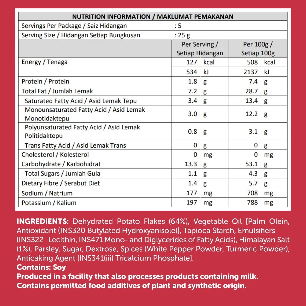 Usage: These potato crisps provide a light energy boost, making them the perfect snack for quick breaks or sharing enjoyable moments with friends.